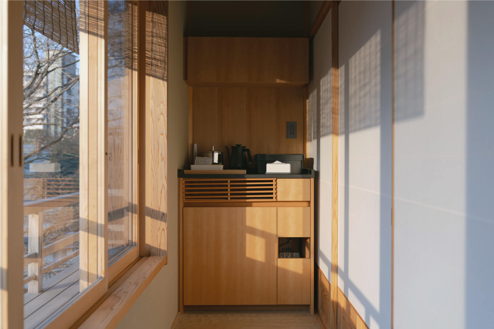 由数寄屋建筑名匠中村外二工务店打造的套房“双叶葵”,是和洋融合的独一无二空间。